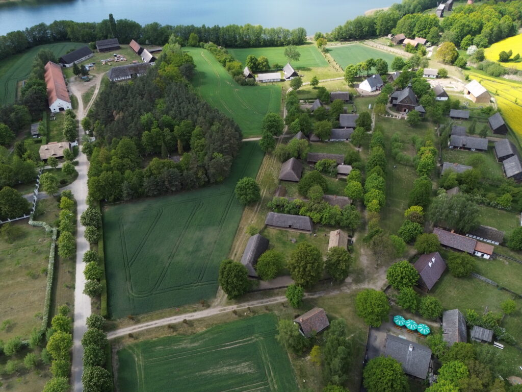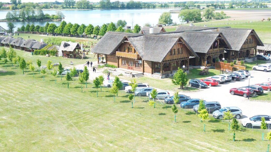 - 🚶 Drewniany most – łączący ląd z wyspą, historyczna rekonstrukcja